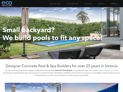 Eco Pools & Spas is a concrete pool builder based in Melbourne, Victoria with more than 25 years experience. Our team custom designs, constructs and landscapes premium pools and spas to meet the needs of their clients and the limitations of their properties.