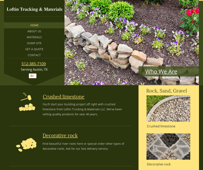 From loam and decorative rock, to specialty mixes for your flowers and garden, Loftin Trucking %38 Materials, LLC will deliver anything you need in Austin, TX and the surrounding areas. Call (512) 385-7109. Loftin Trucking %38 Materials, LLC is a leading provider of construction materials in Austin, TX, San Marcos, TX and the surrounding areas, offering exceptional quality rock, gravel, crushed limestone, sand and more for your landscaping or construction needs. Our skilled team has the experience and knowledge to deliver exactly what you need to ensure your project is a success. We will help you get just the right supplies for your landscape and garden projects. From loam and decorative rock to speciality mixes for your flowers and garden, find out what we can do for you today! We will deliver any material you need as well as haul off services for contractors. From gravel to decorative rock, masonry sand, concrete sand, gardening dirt, fill dirt and more, we have your needs fully covered. Give your lawn and landscape a lift with quality materials offered by Loftin.